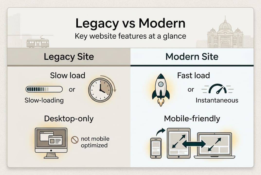 If you're running a small business in Melbourne, you already know your website matters. But here's the reality: having a site that simply exists isn't enough anymore. 94% of Australians trust a business more if it has a professionally designed, up-to-date website. That's not just about looking good. It's about whether customers choose you or scroll past to a competitor. Modern websites aren't a luxury. They're the difference between being found, trusted, and contacted, or being invisible. In this article, we'll show you what makes a website truly modern, why it drives more leads and better search rankings, and how Melbourne small businesses are already seeing real results.